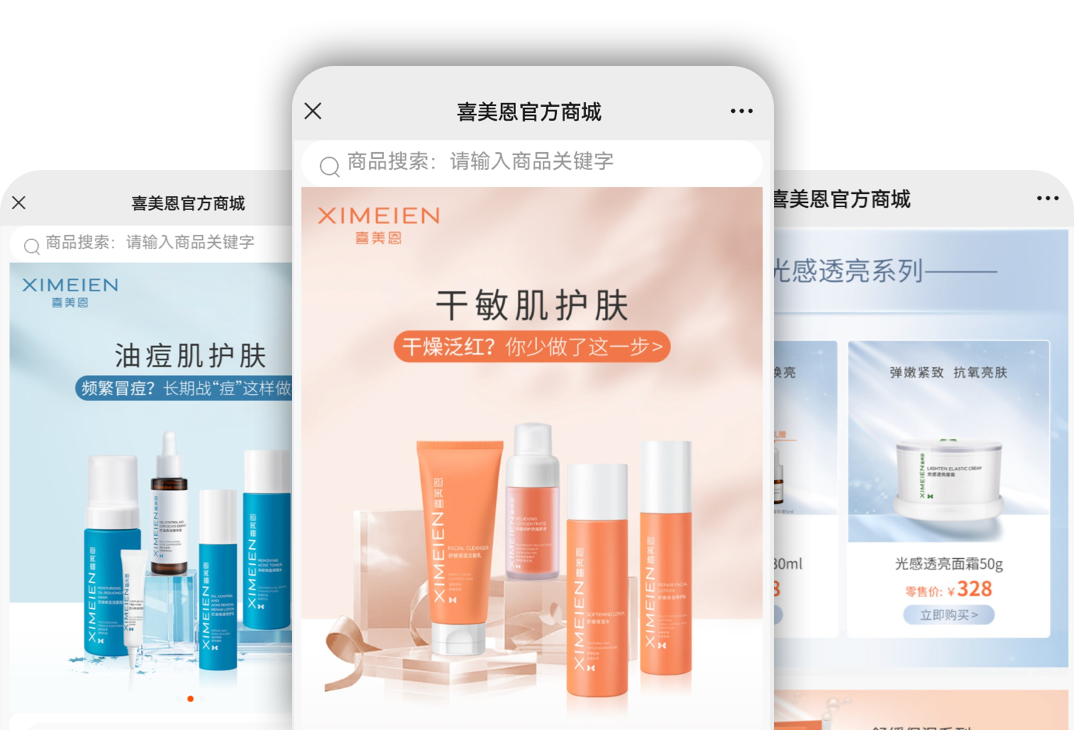 喜美恩官方商城通過啟博微分銷商城,實現線上代理分銷裂變,線下代理招商,全程